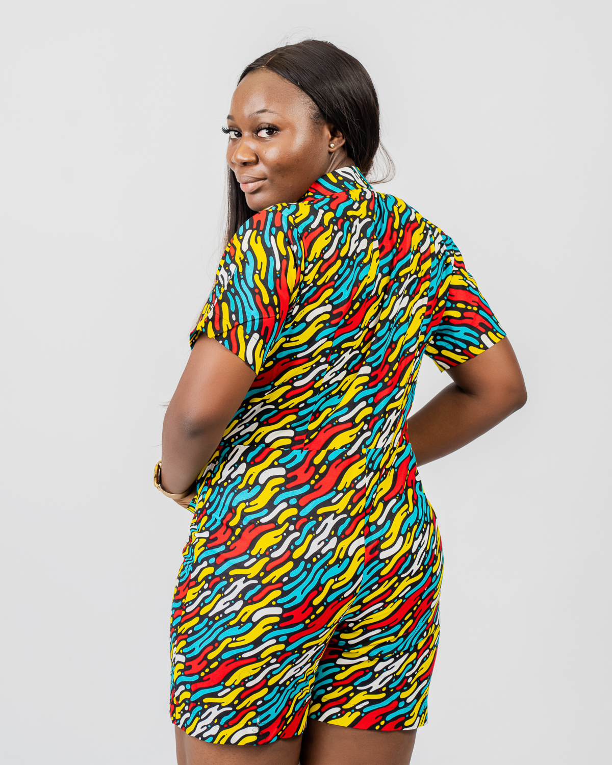 Beauty Short Romper – 100% Cotton – Colourful Ankara – Belt not included